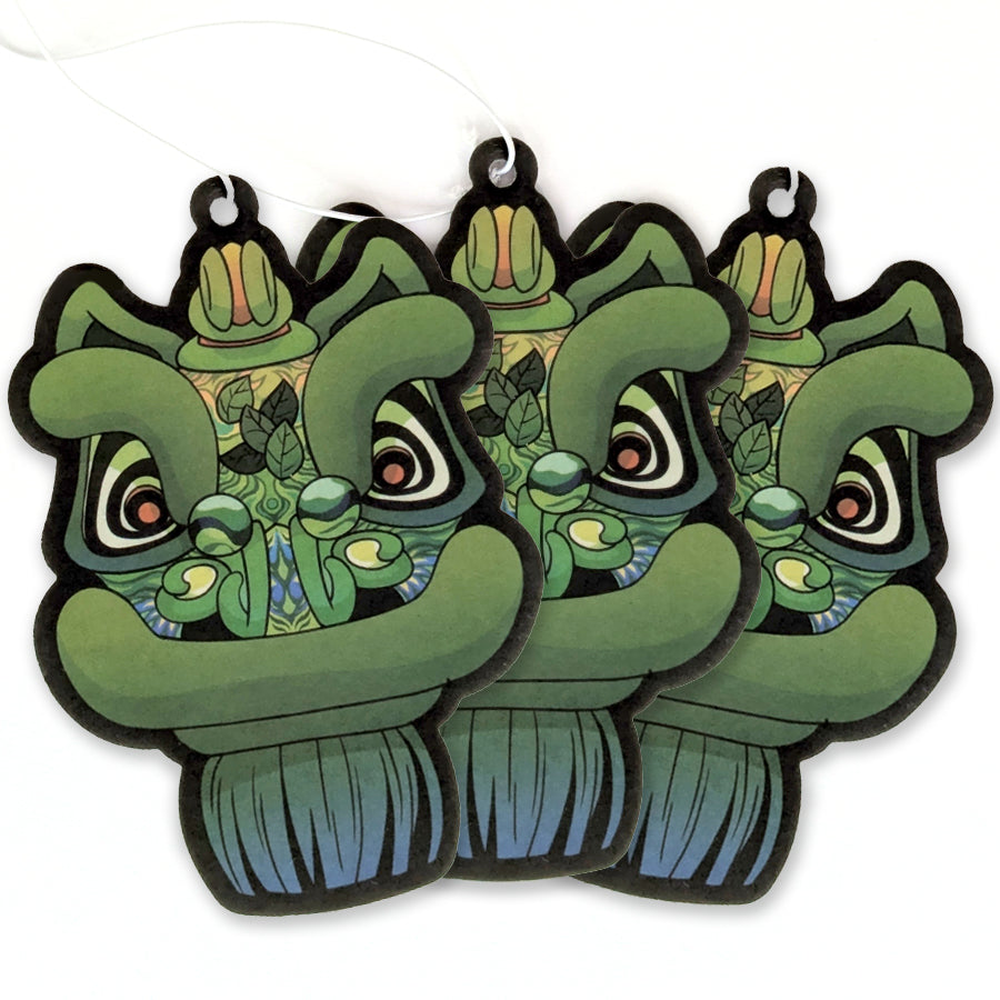 Bring fresh energy into your space with our Lion Dance Air Freshener infused with a sweet green tea scent. Our paper air freshener brings a refreshing and delightful fragrance to any space, perfect for every lion dancer's car, office, or home. Featuring an illustration of the Hoksan Lion, this unique piece of art brings the energy and excitement of Lion Dance to life.