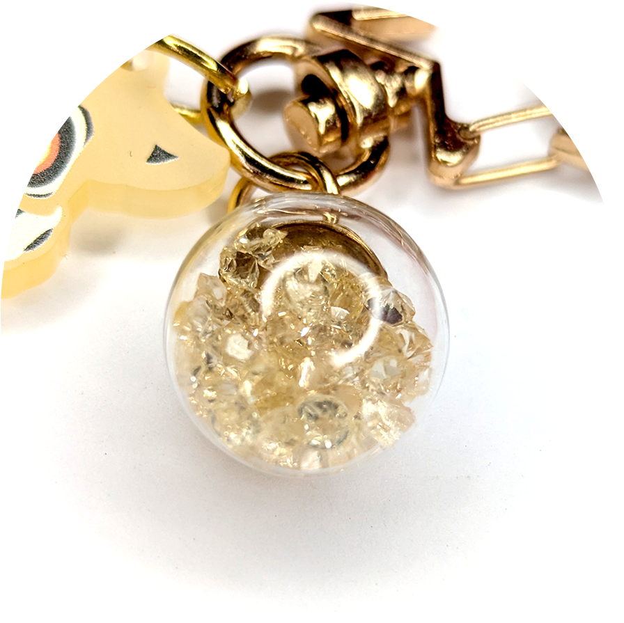 A super fun bauble with several tiny free-moving gems inside. It's a mini shaker!