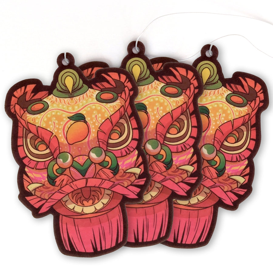 Bring fresh energy into your space with our Lion Dance Air Freshener infused with a sweet mango scent. Our paper air freshener brings a refreshing and delightful fragrance to any space, perfect for every lion dancer's car, office, or home. Featuring an illustration of the Tung Hoi Lion, this unique piece of art brings the energy and excitement of Lion Dance to life.