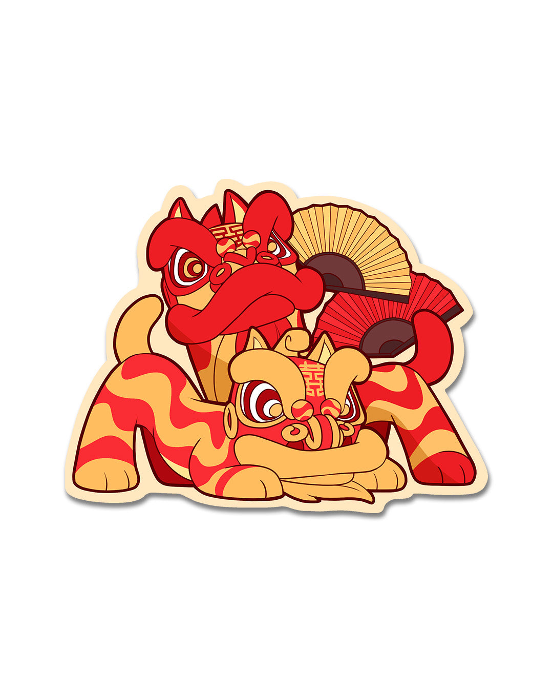 Lion Dance Vinyl Sticker - Double Lion Fans