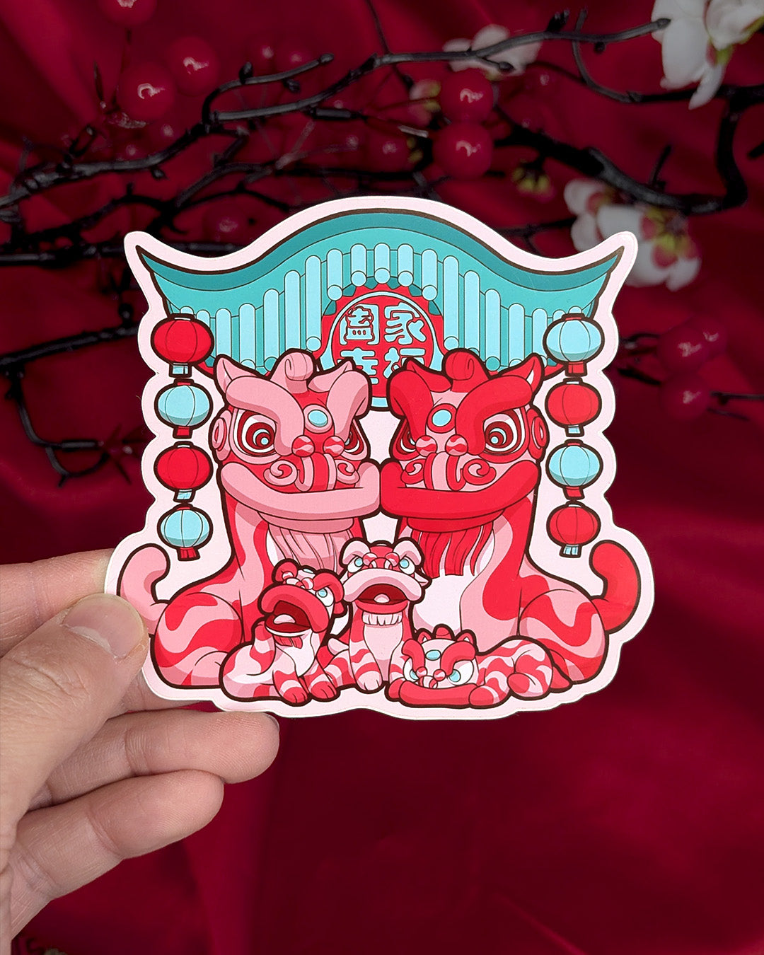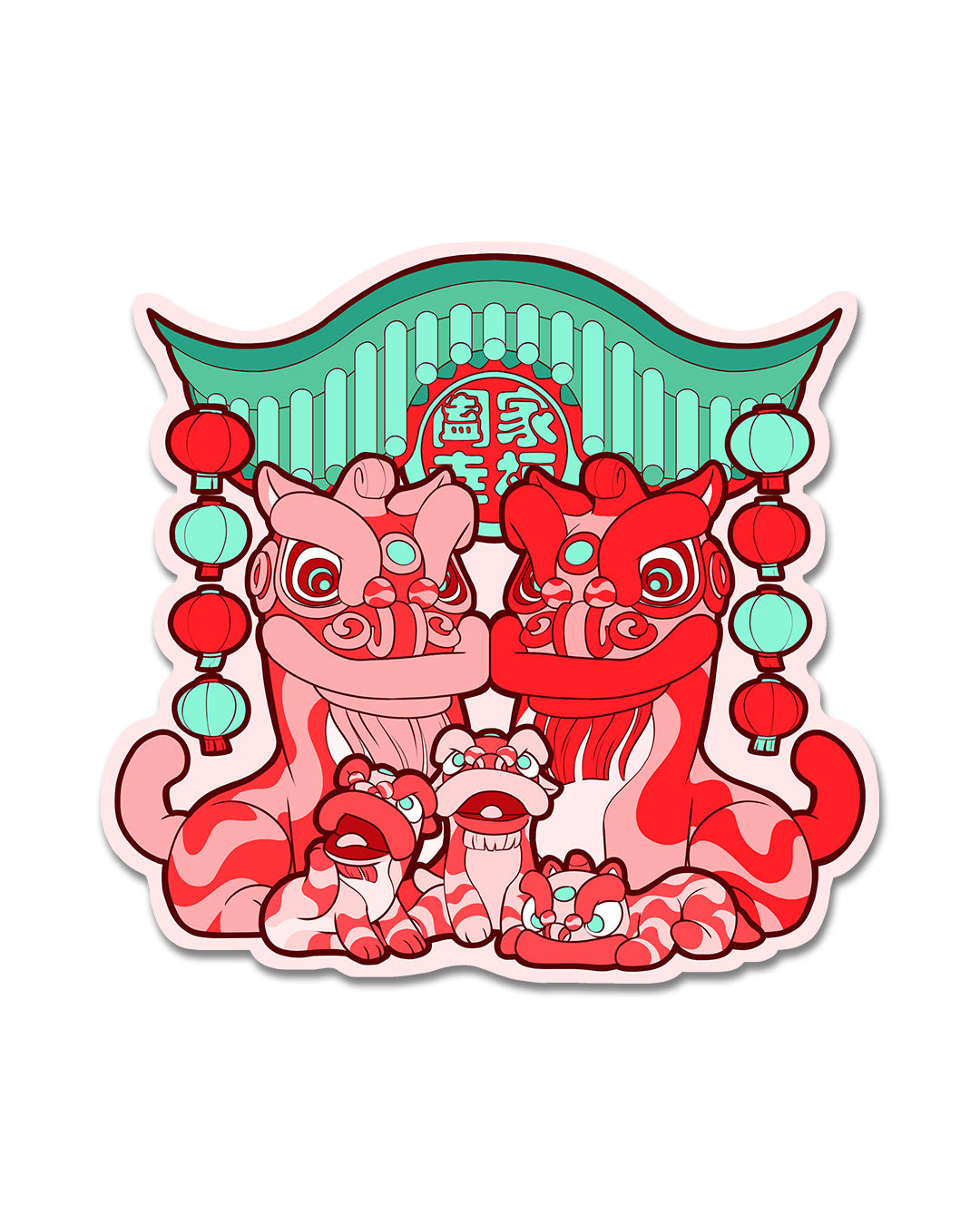 Lion Dance Vinyl Sticker - Lion Family, Family Happiness