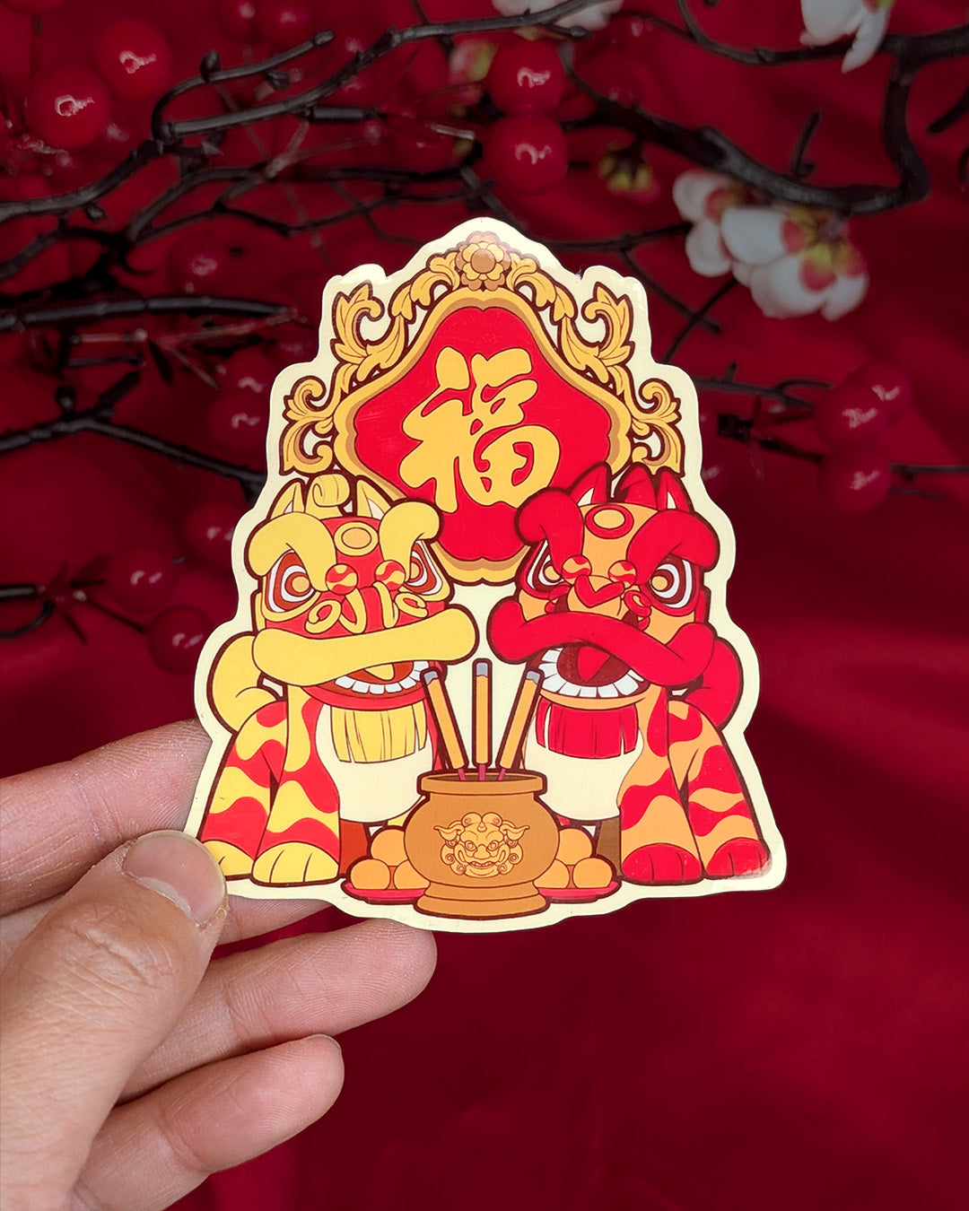 Celebrate the Lunar New Year like it's the main event! This adorable 10cm vinyl sticker transforms the traditional lion dance into cute little creatues that'll make you smile every time you see it!