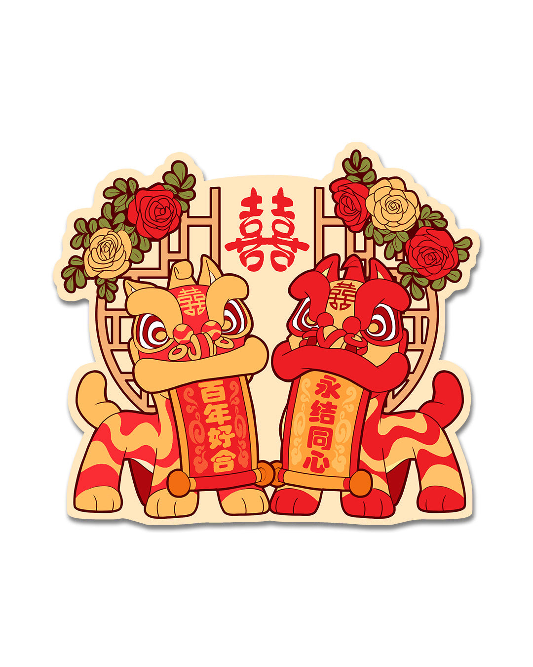 Lion Dance Vinyl Sticker - Wedding Double Happiness Gate