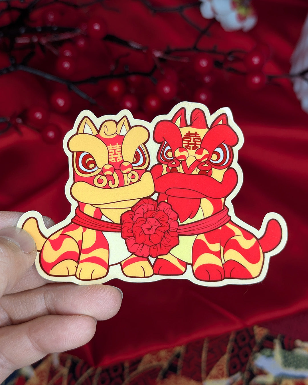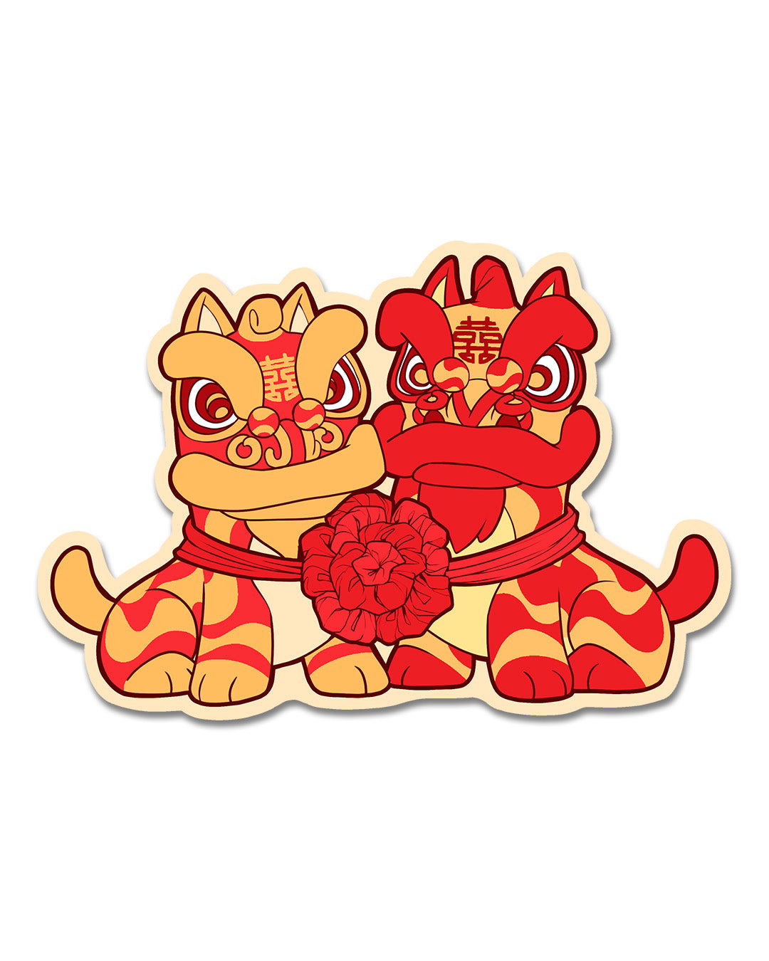 Celebrate love, tradition, and joy with our Lion Dance Wedding Vinyl Sticker. Inspired by the traditional Chinese lion dance, a symbol of good luck and prosperity for the newly wedded couple. This adorable 10cm vinyl sticker captures the festivities of the big day, making it a great gift for newly weds, or as guest favours at your own wedding! A lovely, handcrafted gift is a lovely way to remember the occasion by.